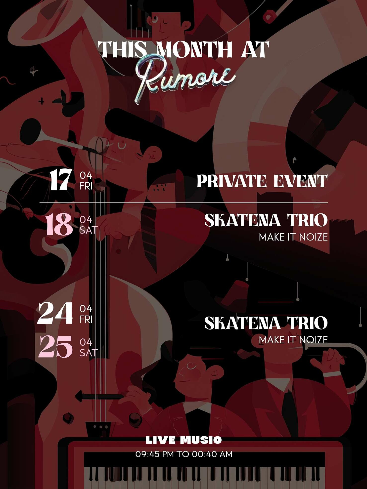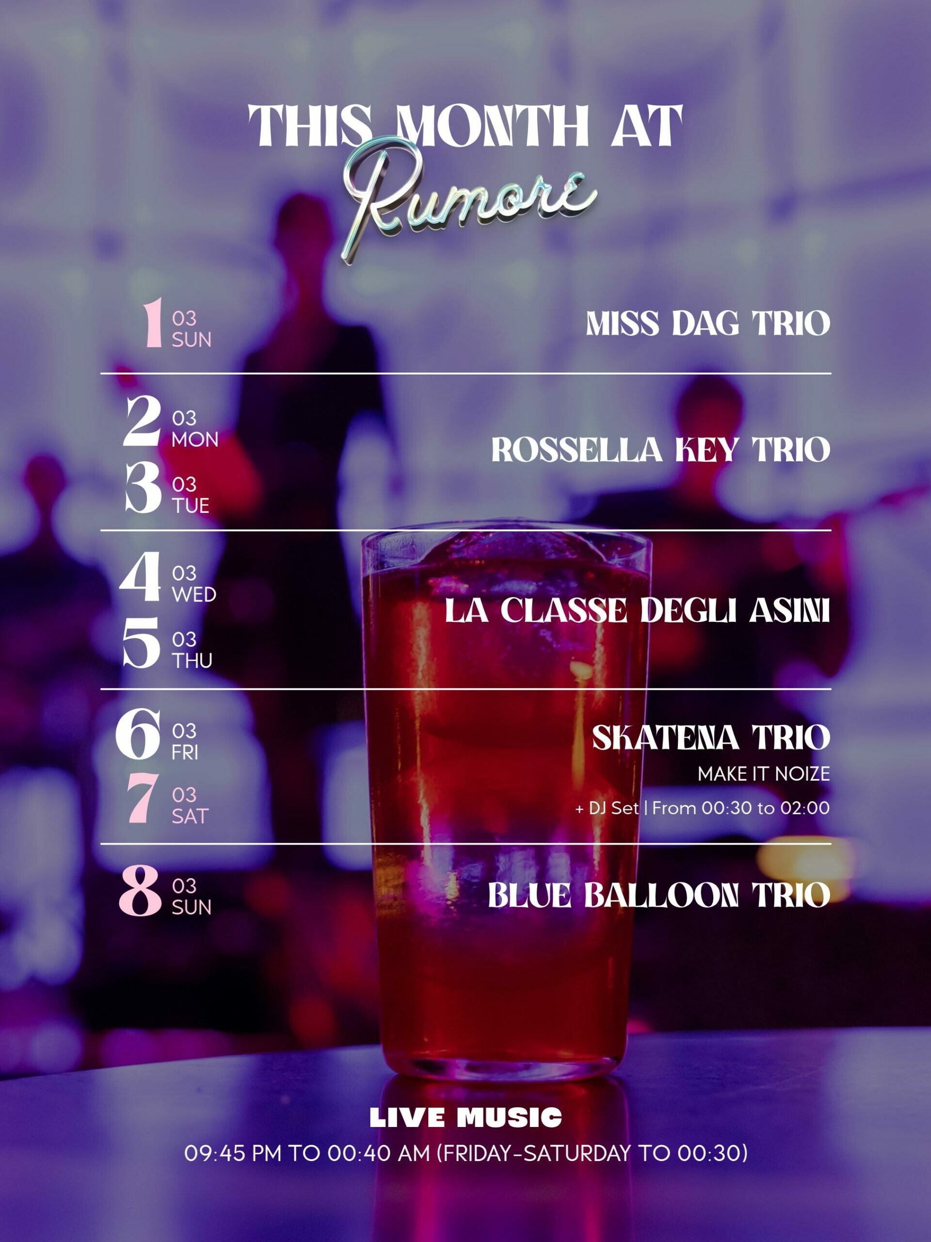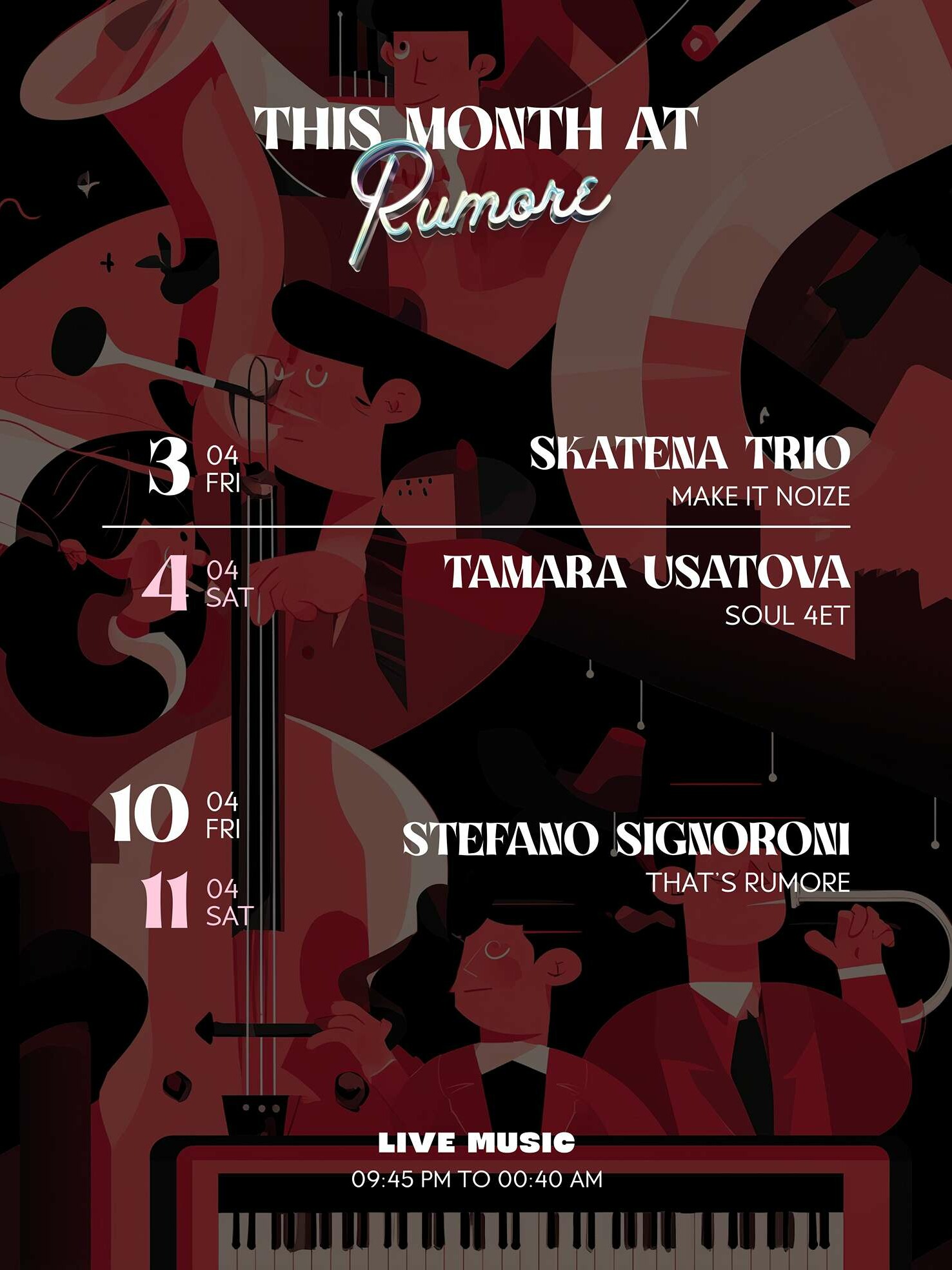 Da Rumore le note diventano vive, l’atmosfera è carica di energia di artisti appassionati.
